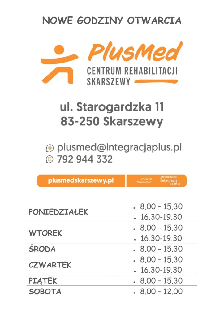 Przedstawiamy pełne godziny otwarcia naszego Centrum Rehabilitacji PlusMed. Jesteśmy tu, aby służyć Ci opieką i wsparciem w Twojej drodze do zdrowia i dobrej kondycji.